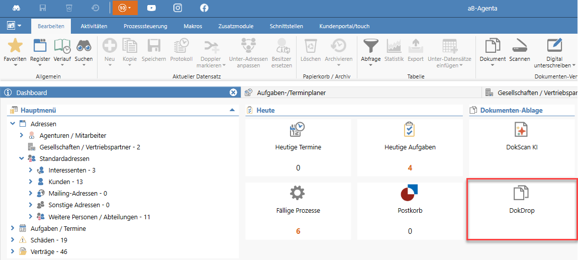 Dashboard: Direkte Dokumentenablage mit DokDrop (Version 20.0.662)