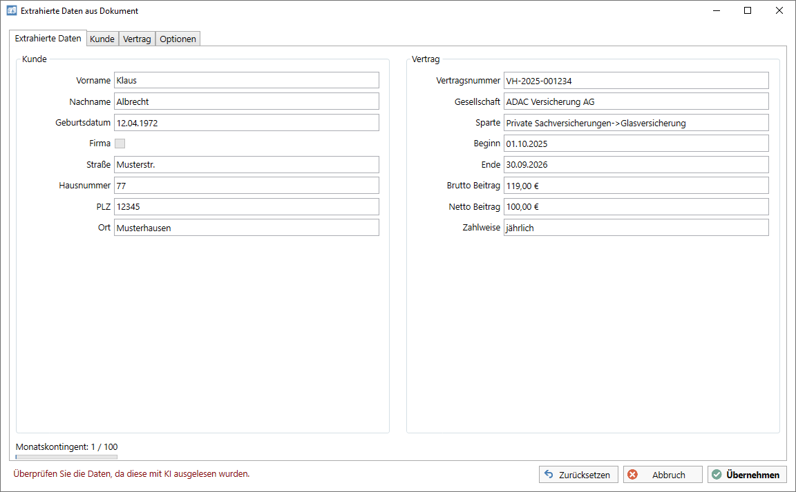 - Zeit sparen: Kein mühsames Abtippen von Policen mehr – die KI übernimmt die Datenerfassung.