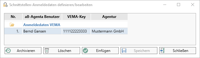 VEMA-Schnittstelle: Mehrere VEMA-Keys für z. B. unterschiedliche Agentur-Zugänge hinterlegen (Version 19.0.7719)